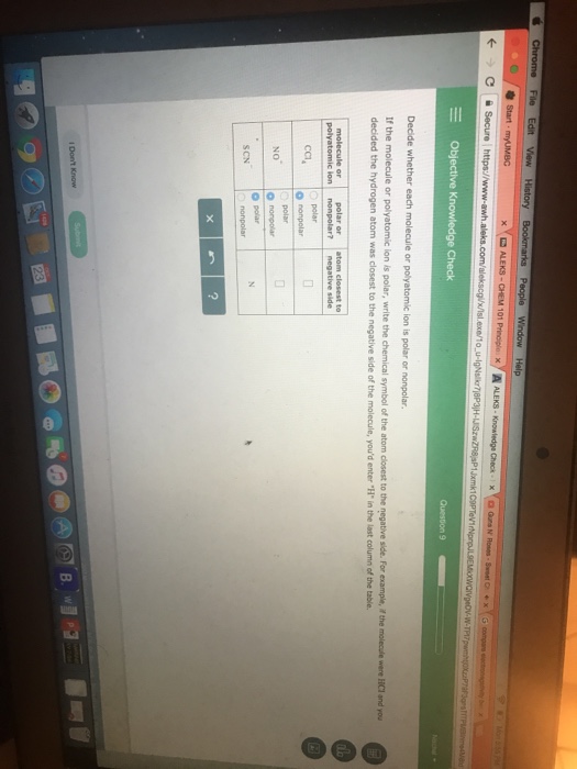Solved: Decide Whether Each Molecule Or Polyatomic Ion Is ... from media.cheggcdn.com A polar molecule is a molecule in which one end of the molecule is slightly positive, while the other end is slightly negative. Polar bonds form when two bonded atoms share electrons unequally. The molecules that have atoms with equal electronegativity are nonpolar in nature because the equal charge whereas the polar molecules have atoms with unequal electronegativity due to which more electronegative atom pulls the larger proportions of. This problem has been solved! Carbon shares its four electrons, which completes the octet of all the atoms in the molecule. Polar in chemistry, polarity is a separation of electric charge leading to a molecule or its chemical groups having an electric dipole or multipole moment. In that case, you will find out that the chlorine atom is more electronegative than the carbon atom as it is closer to flouirne on the. H in the last column of the table.